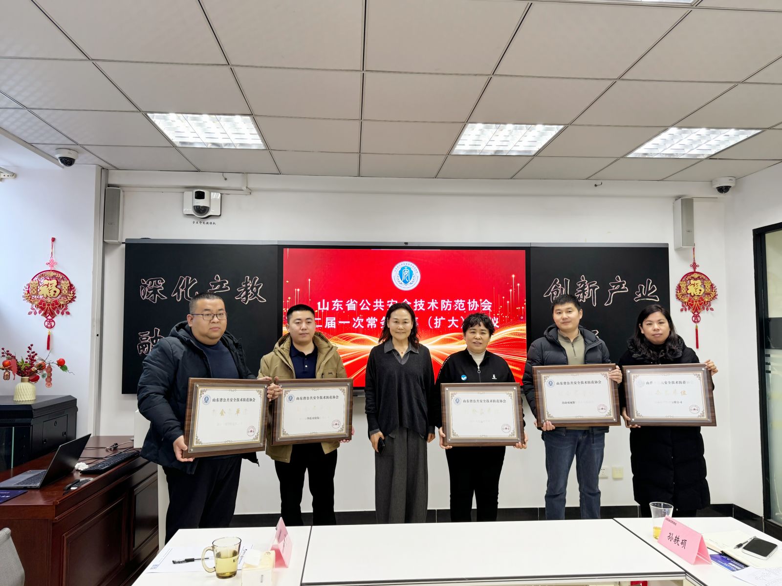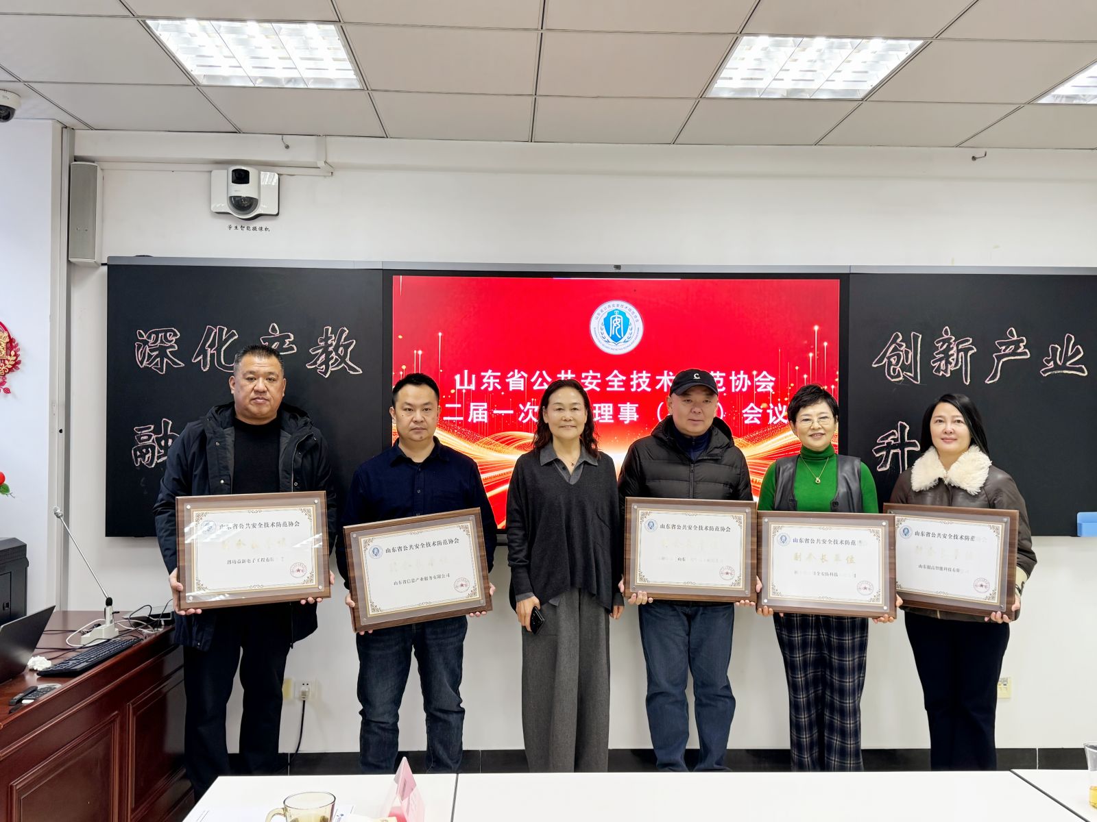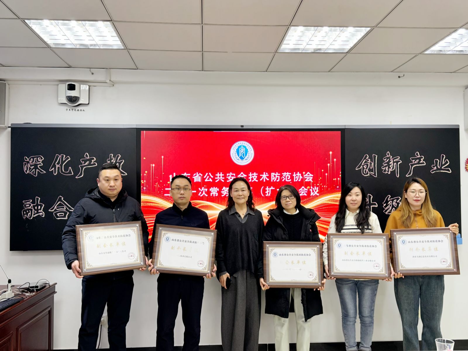 2026年1月20日上午,山东省公共安全技术防范协会二届一次常务理事(扩大)会议在济南银捷实业有限公司顺利召开。山东省公安厅科技信息化总队三级高级警长程少龙、复旦大学光纤研究中心副教授、博士生导师王超应邀出席会议并作专题讲座,省协会常务理事单位等代表共20余人齐聚银捷,共商行业发展大计,省安防协会会长孙增华主持会议。